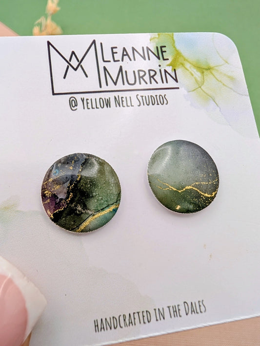 Handmade Original Art Stud Earrings, Landscape, Nature Lovers, Contemporary Abstract, Women's Jewellery Gift