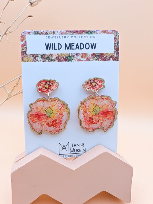 Floral Rural Garden Earrings - Pinks Double Dangle/Drop (P2)