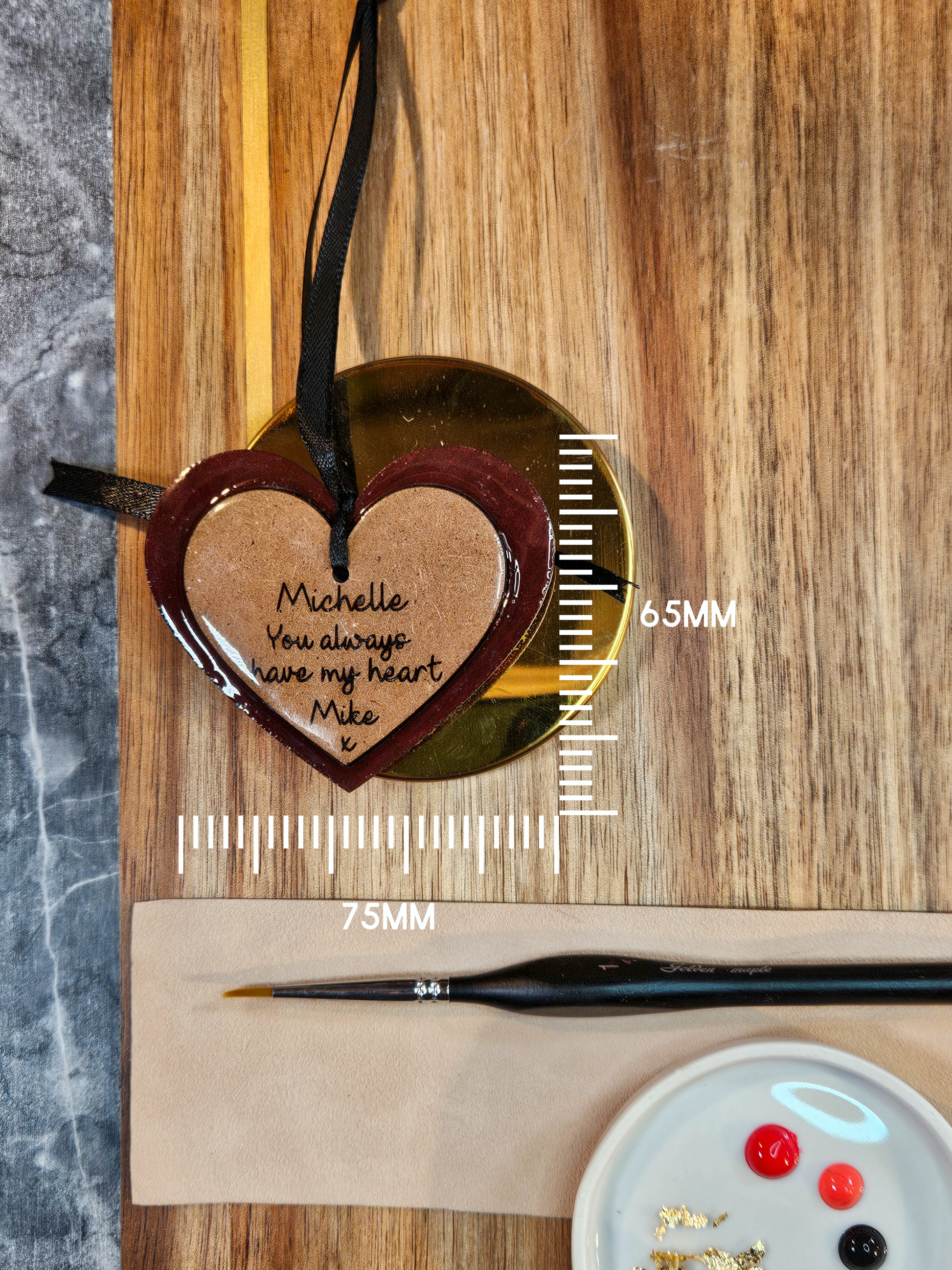 • Hand painted Wood Heart Charm Token